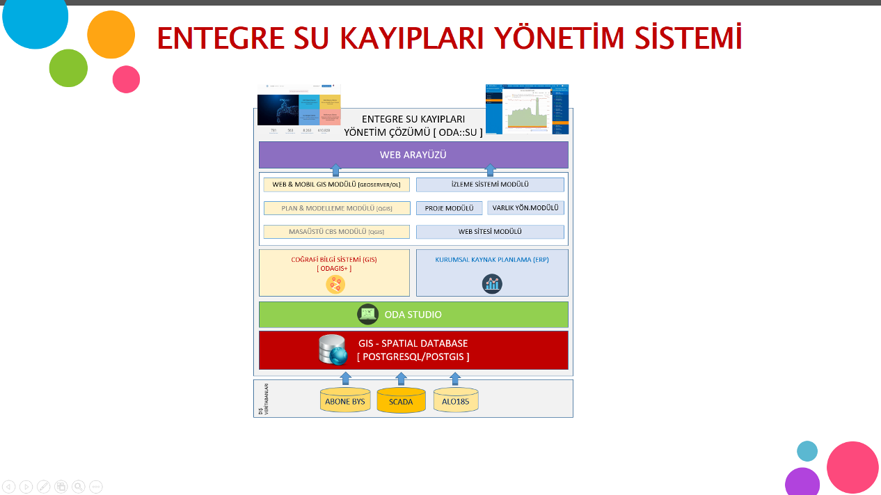Su Kayıpları Yönetim Sistemi (ODA+ SuKYS) Yazılımı web tabanlı bir yazılımdır. Yazılım bileşenleri olarak aşağıda listelenen entegre çalışan modüllere sahiptir: